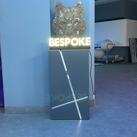 Aanpasbaar Acryl Voetstuk Display Met Gloeiend 3d Letterteken En Decoratieve Wolf Hoofd Voor Winkel Merkamago Display