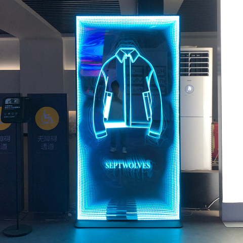 Custom Led 3d Infinity Spiegel Bord Vloer Staand Verlicht Reclamebord Neon Bord Voor Kleding Merk Display